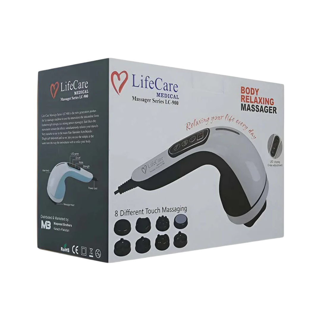Body Relaxing Wired Massager Lifecare LC-900 With 4 Heads is a professional-grade handheld massager designed to relieve tension, soothe achy muscles, and promote full-body relaxation. Featuring four interchangeable heads and adjustable vibration speeds, it provides customizable massage options that mimic manual massage, targeting areas like the waist, shoulders, arms, thighs, calves, buttocks, and abdomen. Its innovative slim wired design ensures uninterrupted use without worrying about battery life, while high-frequency vibrations penetrate deeply for effective muscle relaxation and fat decomposition. Compact, multifunctional, and easy to carry, the Lifecare LC-900 massager is perfect for home, office, or travel, offering therapeutic comfort whenever you need it.