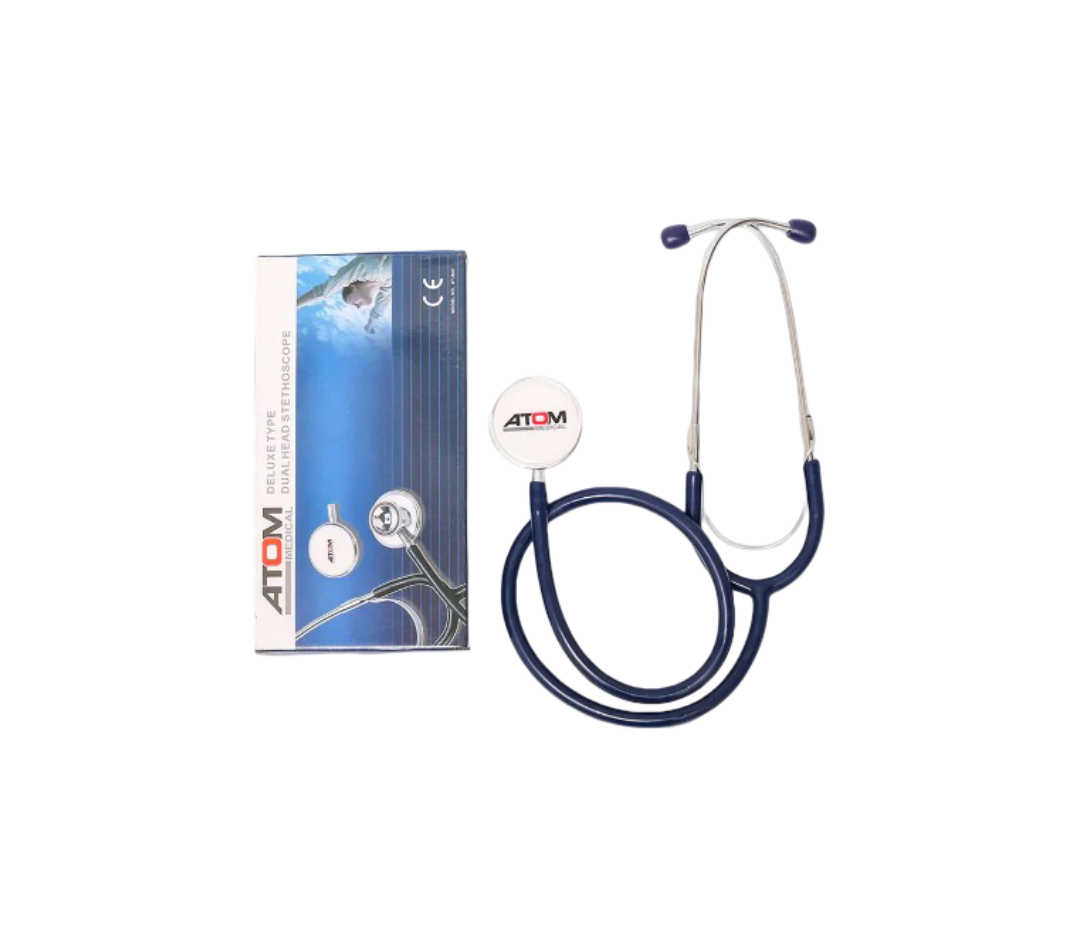 Stethoscope Atom AT-942 is a premium dual head stethoscope designed for doctors, medical students, and healthcare professionals who need reliable performance across all age groups. Featuring an advanced Accufit headset that custom adjusts for maximum comfort, this stethoscope allows accurate diagnosis of adult, pediatric, and infant patients with a single device. Its double dual head design ensures clear, high-quality acoustic performance, making it ideal for routine checkups and critical assessments. Crafted with durability and precision, the Atom AT-942 combines comfort, versatility, and luxury in one essential medical instrument, making it a trusted choice for clinics, hospitals, and personal use.